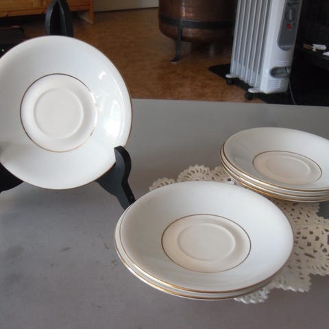 En kaffekopp og fire kaffeskåler fra Figgjo Flint. 30 kr per del.