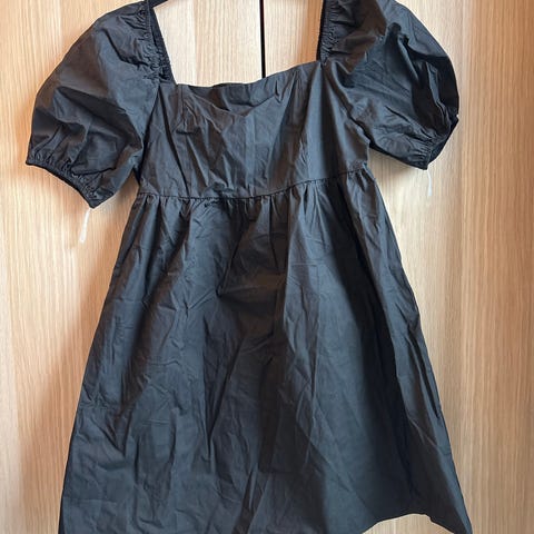 Kjolen har dekorative sløyfer på armene og rund utringning på ryggen. Den er lite og pent brukt. En gang. Vid og løs passform.