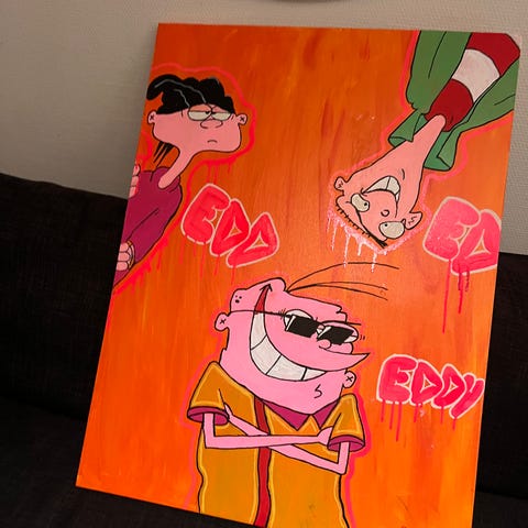 Originalt maleri av Selwyn Senatori. Maleriet har Senatoris mest karakteristiske objektiver i hans framstilling av "La Dolce vita"