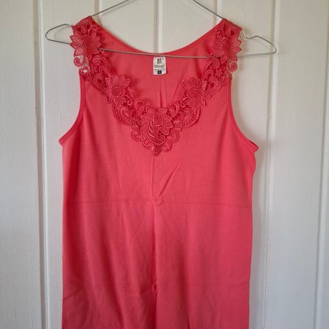 Lite brukt topp i 100 bomull, oransje farge, str S/M. Lengde 63 cm