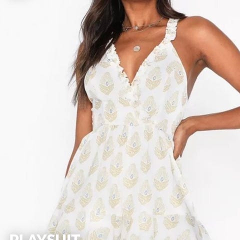 Romper/playsuit i sort velour med sølvdetaljer fra Only i str. L selges. Kun prøvd på, ikke brukt. Prislapp henger fremdeles på.