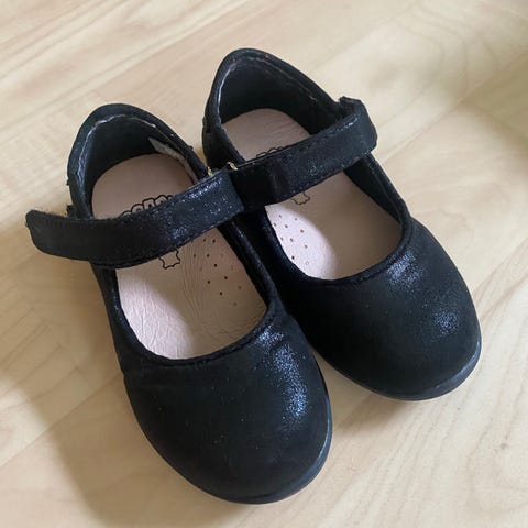 Finsko 50 kr svart med gull str 21 til jente,passer til kjole,bunad ettersom. Tror bare brukt noen ganger.Kan sendes, kjøper betaler frakt, kan bringes i nærområdet etter avtale.😀