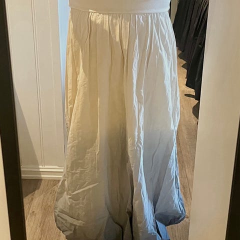 Meget pent og luftig linskjørt i delikat lysbeige farge. Skjørtet er lite brukt og i fin stand. Veldig deilig og luftig linstoff.