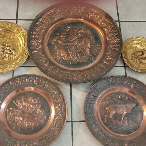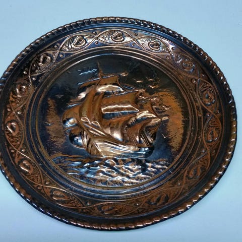 Stor flott tykk kobberplate i meget god stand heller til veggheng.