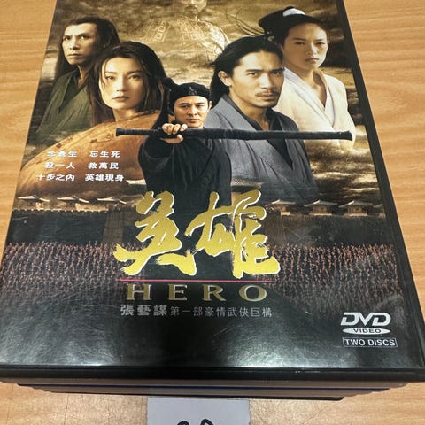 2-discutgave av den kinesiske, storslåtte "Hero" av Zhang Yimou fra 2002. Asiatisk DVD-utgivelse, men med engelsk tekst på cover og film. Egen disc med ekstramateriale.