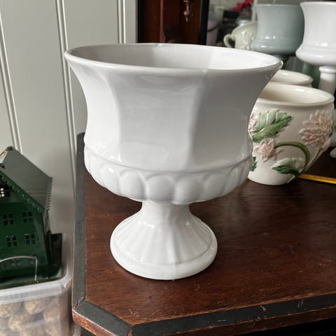 Gammel, flott potteskjuler/blomsterpotte selges. Noe bruksmerker/slitasje kan forekomme. Selges som den er. Se bilder.