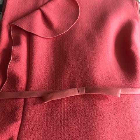 Selger ubrukt kjole fra Dolce & Gabbana i klassisk stil. Nydelig rosafarge som passer godt til hele året. Stretch i stoffet, silkefor, glidelås bak, jeg har lagt den ned hos skredder. Total lengde mål bak og ned er 89,5 cm. Ny pris var 18000kr. Kjøpt i London.