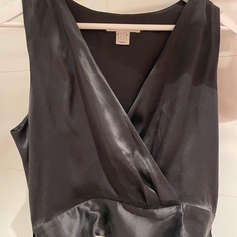 Mønstret silketopp fra Helmut Lang, str. S. 90% silke og meget pent brukt. Svart og grønntoner.