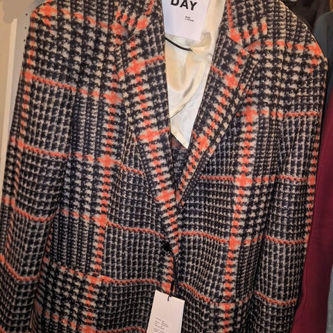 Litt usynk i str på jakke og bukse pga blazeren veldig oversized så valgte str 40 for en mer normal passform og buksen i 44 pga lite/ingen stretch.