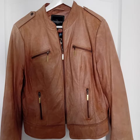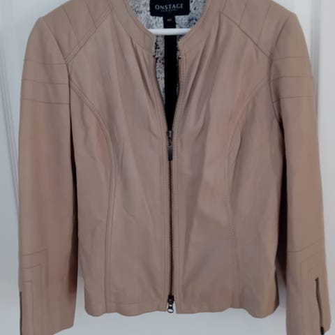 Onestage myk skinnjakke gråbeige str 42, lengde på jakken 45 cm , ikke brukt