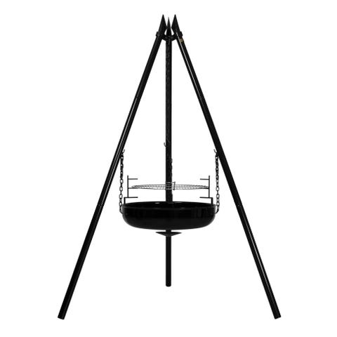 Denne flotte bålpannen leveres med gnistfanger, grillrist og støpejern stekeplate. Det følger også med kjetting for oppheng av kaffekjele eller gryte til matlaging.