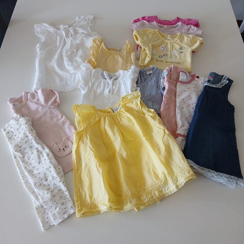 Kr 98 for 2 kjoler. Selger en rimelig klespakke med 2 forskjellige kjoler str 3-6 mnd. Se bildene for pris og de som er igjen. sommerkjoler