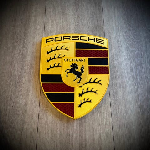 Stort fint håndlaget Lamborghini emalje skilt til salgs.