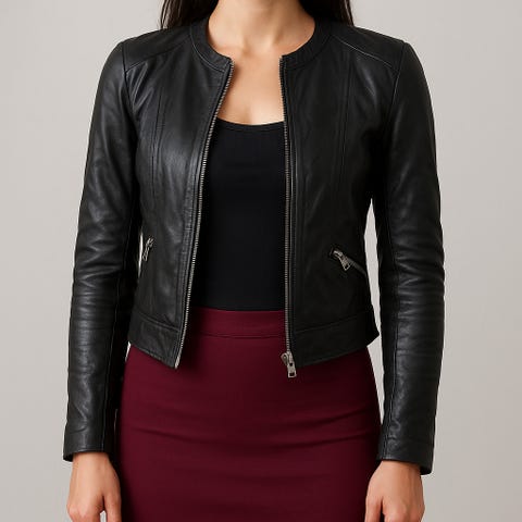 Jakke i mykt semsket skinn med fine detaljer fra Mango. Str XS, passer S også.
