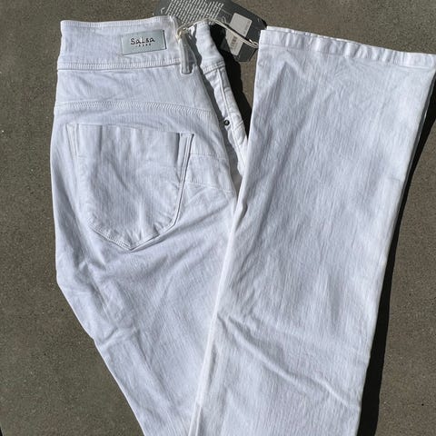 Søkeord: bukse, bukser, pants, jeans, dongeribukse, dongribukse, underdel, sleng, slengbukse, slengbukser, boot cut, bootcut, hvit, hvitt, kvit, white, days like this, ny, nye, nytt, ubrukt, new, not used