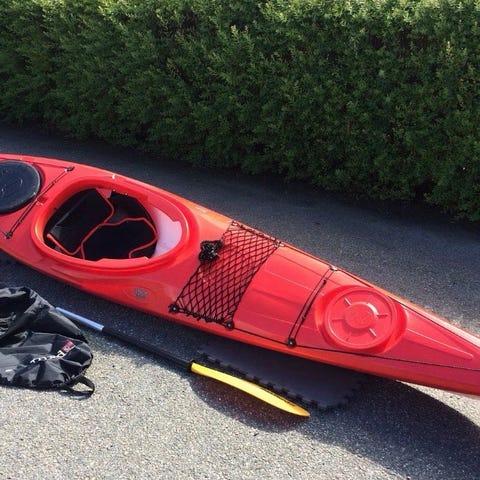 TIL UTLEIE: Kajakk med åre, spruttrekk og vest