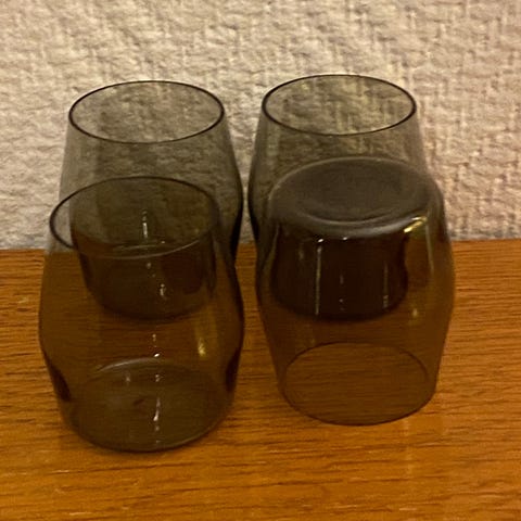5 stk ‘tannglass’ i plast, 2 lilla, 2 blanke og 1 turkis. Alle 5 for kr 25,-