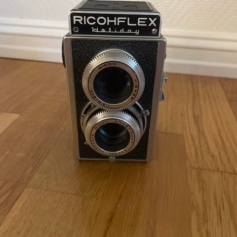 Super Ricohflex med bæreveske i skinn - Gammelt speilreflekskamera