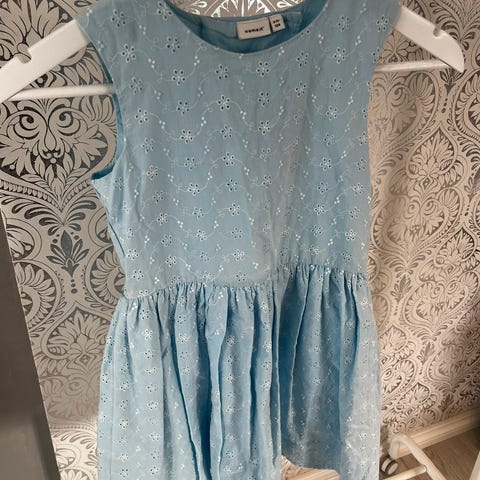 Nydelig småblomster-mønstret lang (sommer-) kjole i str. 134 cm, 8-9 år. Strikk i midjen og knapp bak i nakken. Fra Lindex. Lett og myk viskose. Svært pent og lite brukt av enebarn og fremstår som ny.