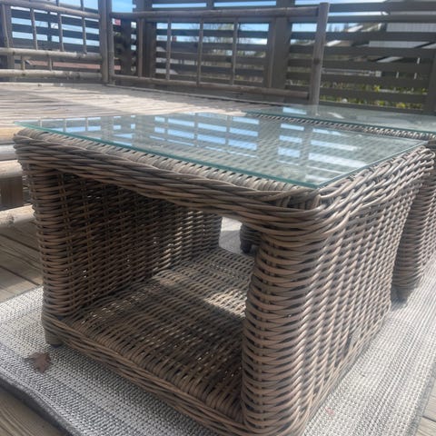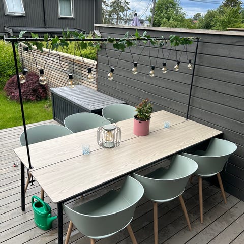 Flott bord i plastrotting,kjøpt i juni -21.Veldig lite brukt.Målene på bordet er B:130•70,Høyde 52cm.