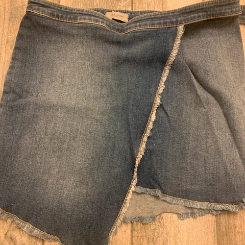 Ubrukt jeansskjørt med dekorativ bred kant øverst (liten på størrelsen). Pris ny 1200.