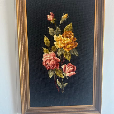 Pent tekstilbilde av roser h 44cm. b 35 cm
