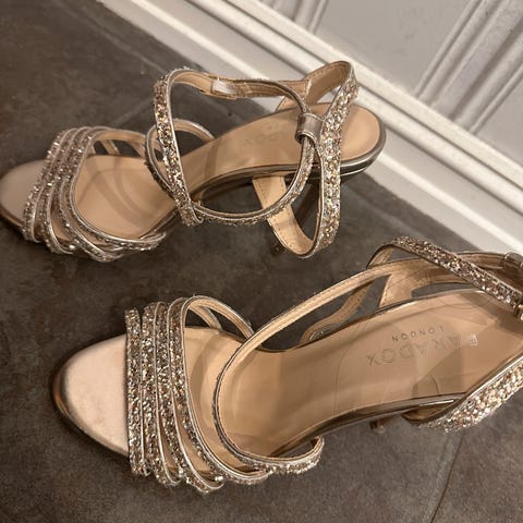 Veldig fint brukt sko nesten ikke brukt bare prøvd på. Den er hvit farge å ha lit glitre på strekken