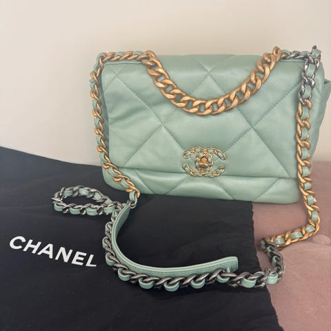 Selger min lite og pent brukt CHANEL 19 clutch-veske med lenke.