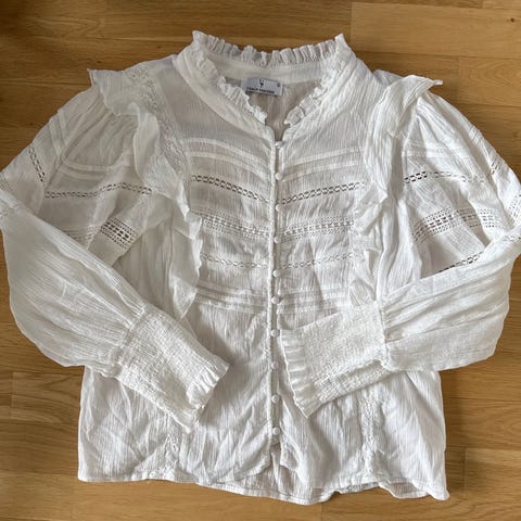 Nydelig hvit blondebluse fra Pieces i størrelse xs. 100 prosent polyester.