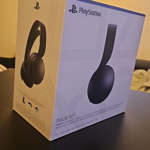 Uåpnet PlayStation 5 Pulse 3D Wireless, som følget med PS5 pakketilbudet jeg kjøpte.