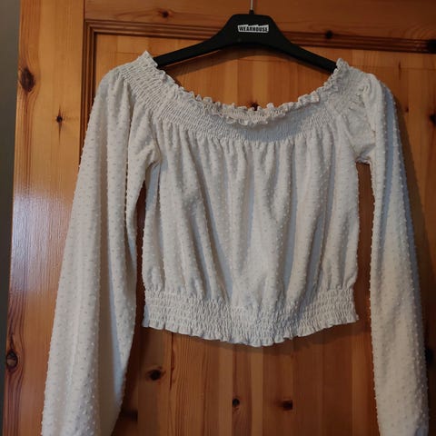 Hvit, topp med nydelig blondedetaljer i str. XS.