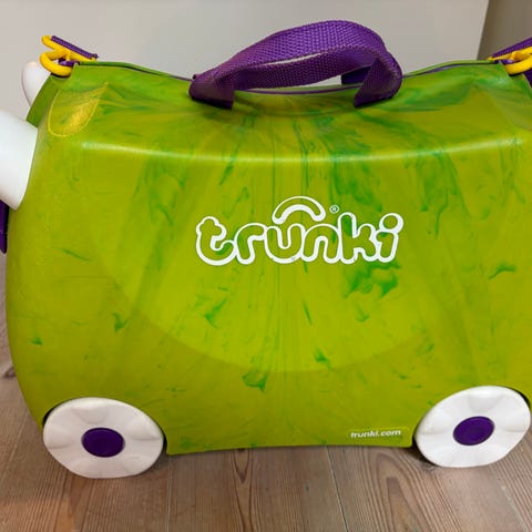 Skal du ut og reise med barn? Da er det gøy for dem å ha sin egen trillekoffert! Selger en blå og rød trillekoffert fra Sigikid, som kun er brukt på et par flyturer. Passer som kabinbagasje på fly.