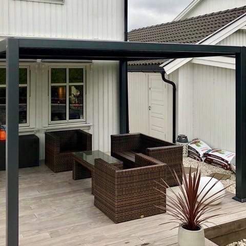 Drivhuset er utstyrt med takrenne for å enkelt føre større mengder regn vekk fra drivhuset eller til en vanntønne som kan brukes til vanning. Dette er bra både for miljøet og lommeboken. Takrennene er beregnet for å takle opp til 40 mm nedbør. Nedløpsrør er ikke inkludert..