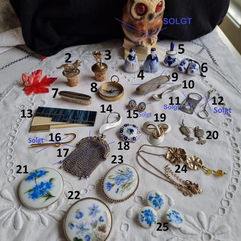 Antikke og vintage smykker, norrønt, viktoriansk, medaljong, mansjettknapper, os
