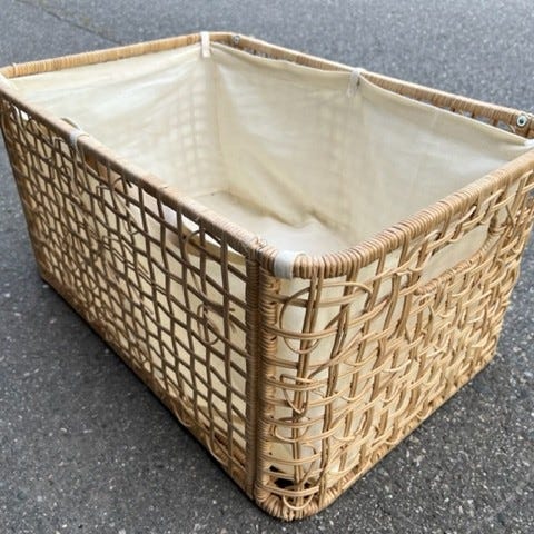 Rund «kurv» med lokk: ca 50 cm høy og 35 cm dm