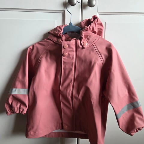 Regnsettet er ikke så mye brukt. Jakken er nesten ny men buksen som du kan se på bildet har slitasje da den kommer sånn den er m slitasje. Derfor den selges billig. Man kan bare bruke gaffa tape over slitasje.