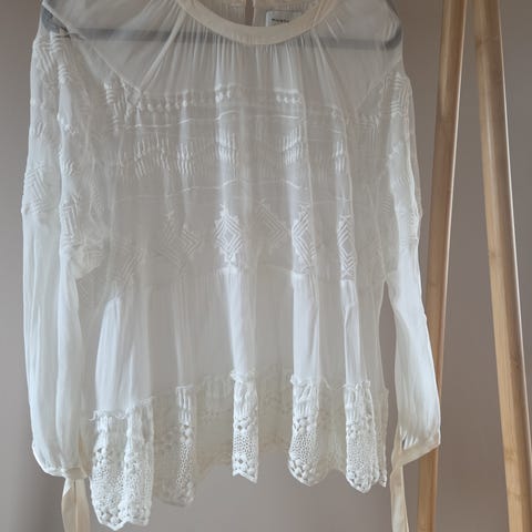 For venninne selges denne nydelige blusen som aldri er brukt. Nydelig lukket i hals ,eller åpen. Stramming i livet om man vil det.