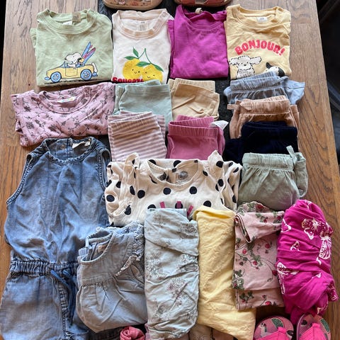 Masse fine klær til jente, sommerklær. Pent brukt. Shortser, kjoler, bodyer, bukser, pysjer, lue, diverse sokker, genser. Alt er pent brukt.
