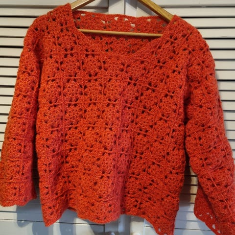 Håndlaget strikket bluse. Elastisk og passer fra XS- M