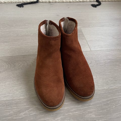 Varmfôrede utility-boots med et chunky design. Modellen er laget i svart skinn med rund tå, glidelås langs innsiden av skaftet og snøring foran. Den robuste yttersålen har en 45 mm grov hæl.