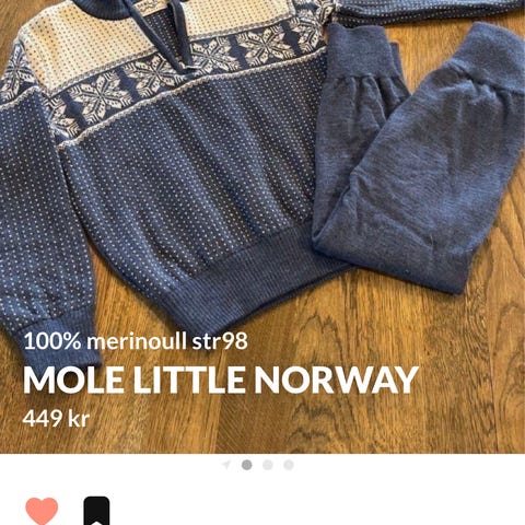 Ny med lapp på. Fra Iis woodling sitt barnemerke, little mountian.