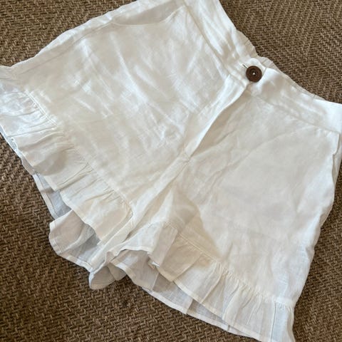 Shorts i 100% lin selges. Veldig fin og svært behagelig på i sommervarmen. Størrelse M, men kan passe alt fra XS- M grunnet strikken i livet. Pent brukt et par ganger.