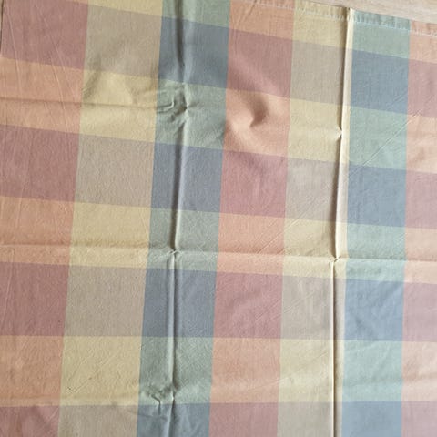 I god stand. Hjemmesydd. Til stang. Sydd slik at det blir en kant over stangen / rynkehode.