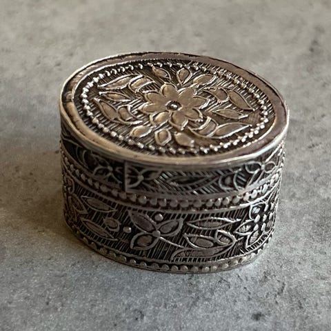 Begeret har litt bulker i seg, men et vakkert stykke arbeid.