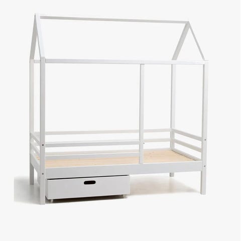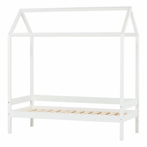 Sengen er smart designet med en ramme formet som et trehus der du kan henge gardiner for å gi barnet mer privatliv. Denne tresengen kan også brukes som en lesekrok eller et lekehus. Denne sengerammen er laget i heltre furu, og er ekstremt robust og holdbar. De sterke lamellene gir nødvendig støtte og sikrer stabilitet. Denne sengerammen er egnet til en madrass på 70 x 140 cm.