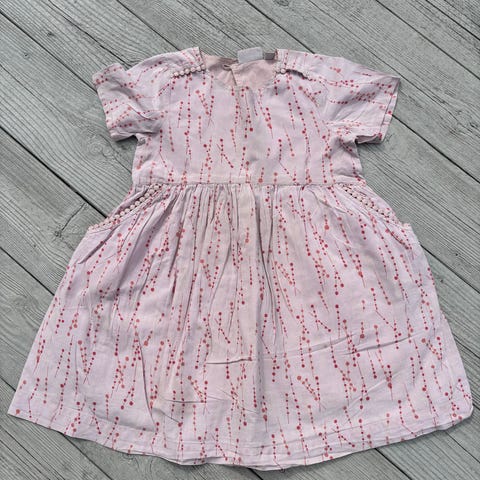 Nydelig sett med kjole, en hvit langermet trøye og cardigan fra Noa Noa i str 104. Pent brukt. Ingen hull eller flekker. Vasket med Neutral vaskemiddel. Hjem uten røyk, parfyme og kjæledyr.