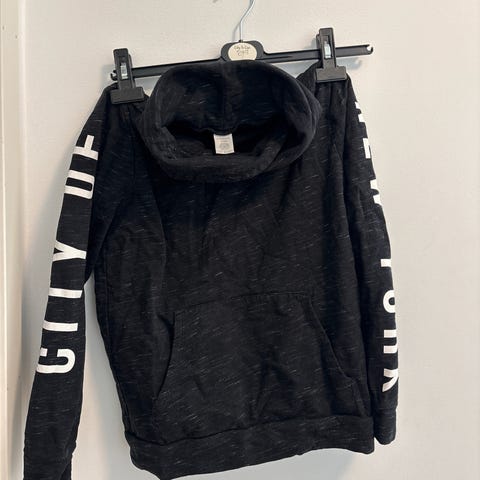 Myk og god hettegenser selges billig til 50 kr. Den er I 100% bommul. genseren kan lukkes og åpnes med glidelås.