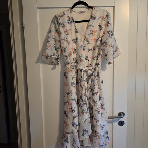 Rålekkert Oasis kjole i kremfarget med sølv detaljer. 125cmlang 40cm bred på smallest delen av kjolen.str 14 /petite . Kjempefin kjole ✨✨ frakt kommer i tillegg
