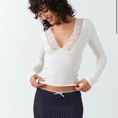 Brukt Blonde topp fra Gina tricot med lange ermer selges. Størrelse M.