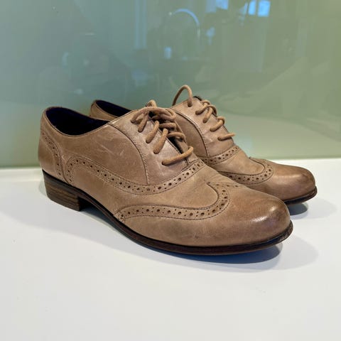 Farge brun. Utrolig behagelig å gå med.